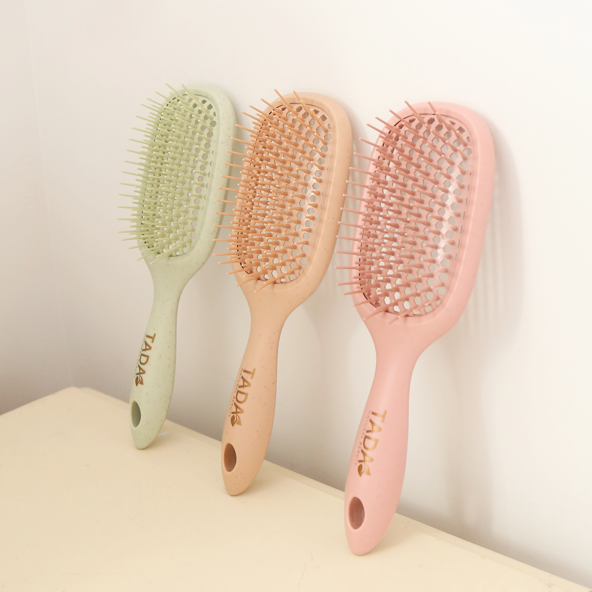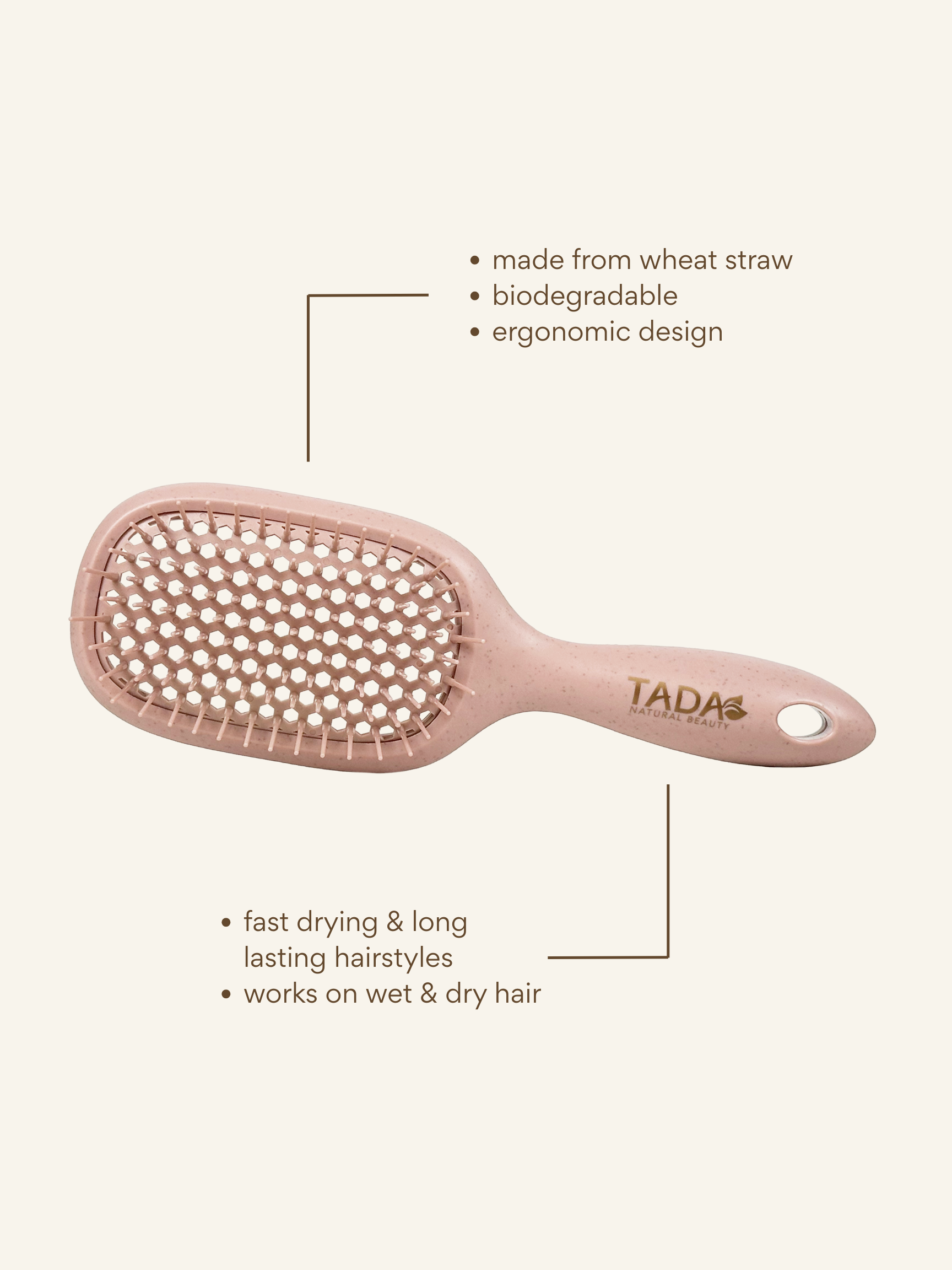 Designed for quick drying and effortless styling, this biodegradable vent brush in soft pink combines eco-conscious materials with functionality. Its vented design allows for better airflow during blow-drying, reducing styling time while protecting hair health. A chic, mindful gift that pairs beauty with sustainability.