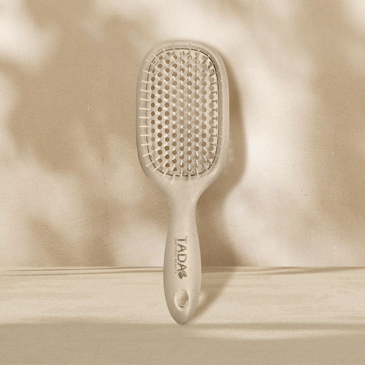 Designed for quick drying and effortless styling, this biodegradable vent brush in neutral mauve combines eco-conscious materials with functionality. Its vented design allows for better airflow during blow-drying, reducing styling time while protecting hair health. A chic, mindful gift that pairs beauty with sustainability.