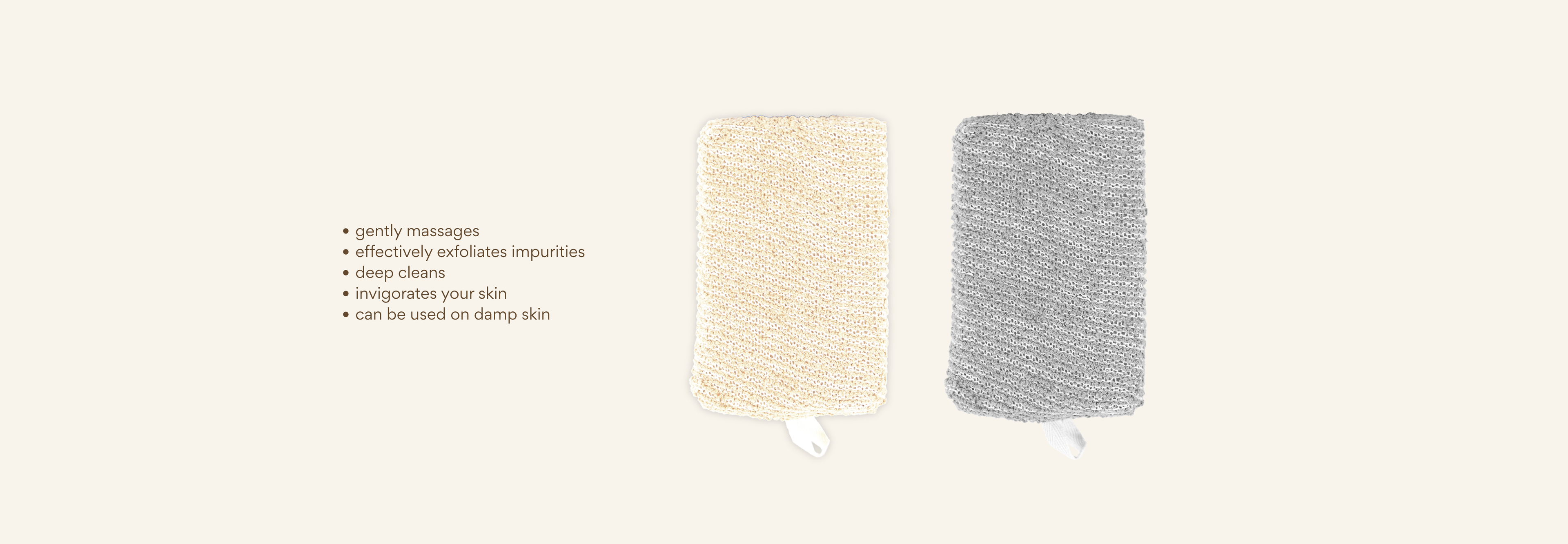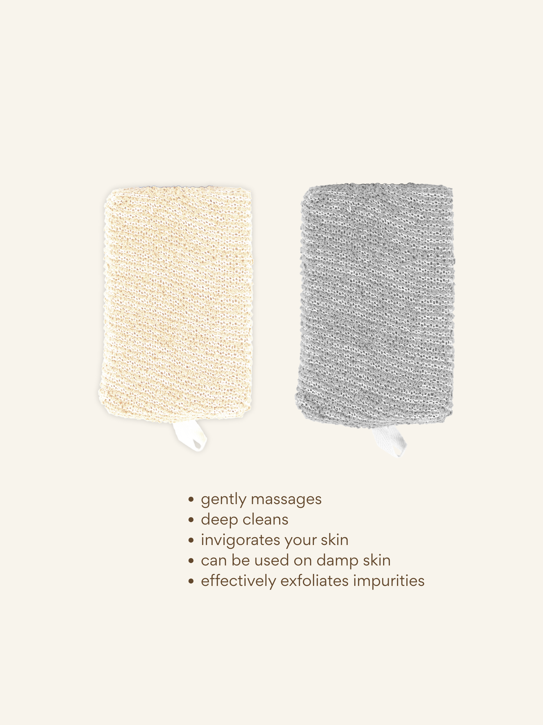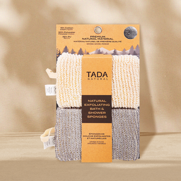 This 2-pack of square sponges is crafted from natural fibers to gently exfoliate and cleanse. The beige and gray tones bring a grounded aesthetic while offering an eco-conscious alternative for daily shower care.
